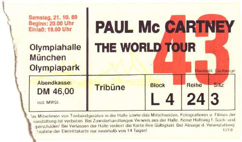 | 30.09.89 | Stockholm | Isstadion | Sweden | The Paul McCartney World Tour (vinyl) |